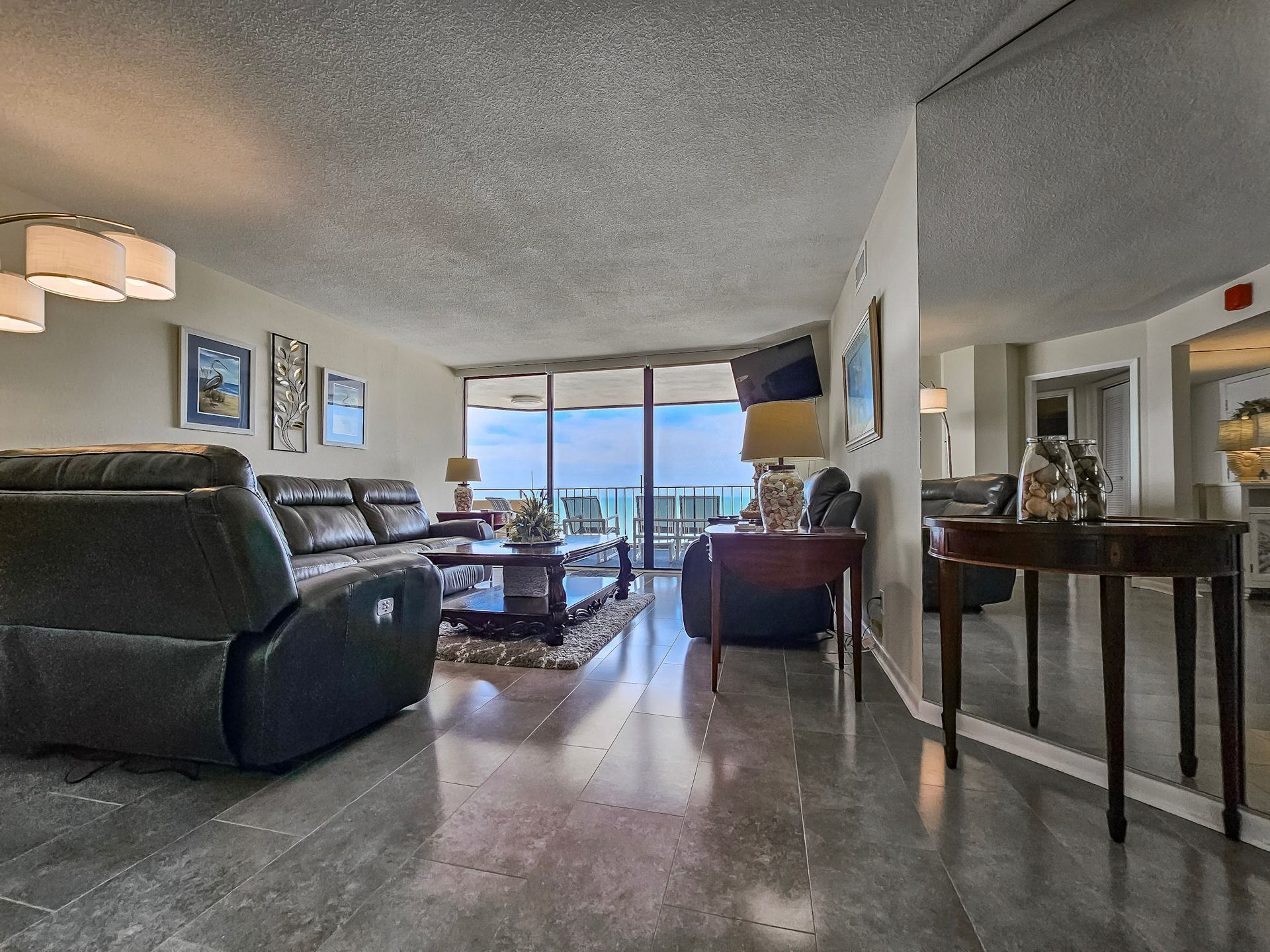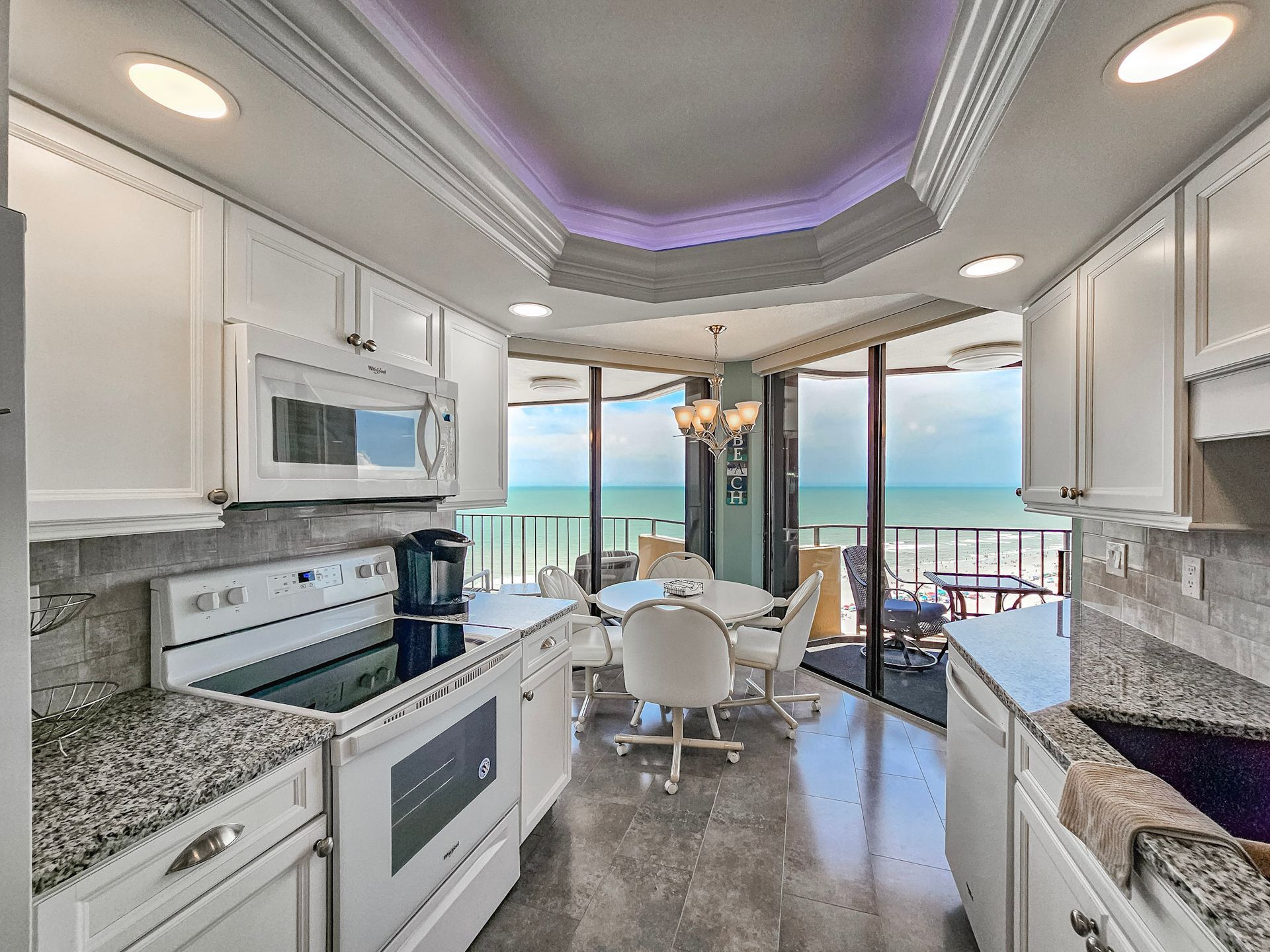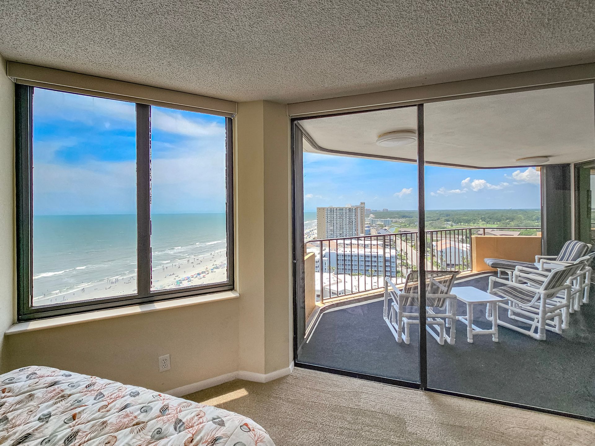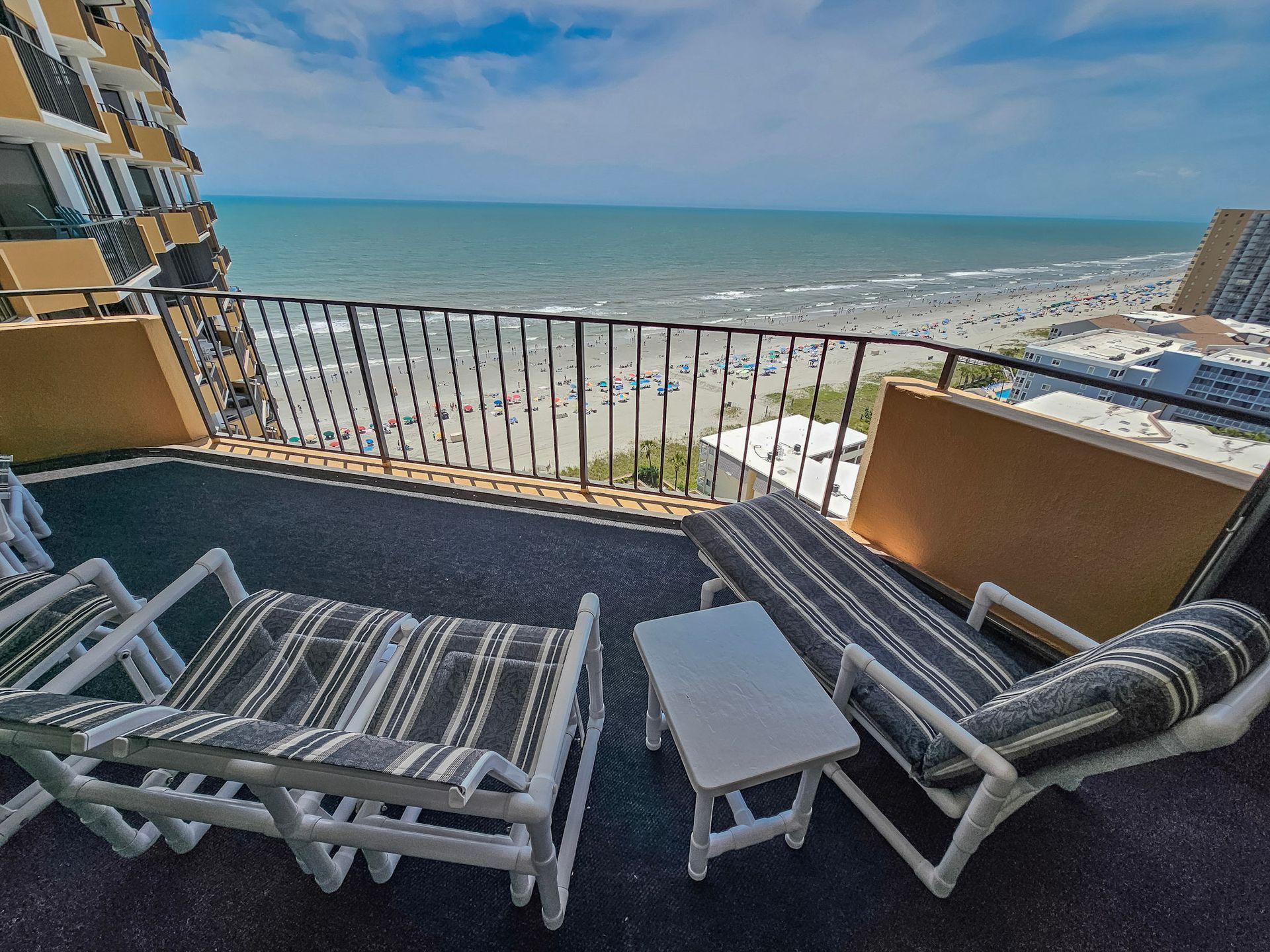 Unit #1504 has beautiful oceanfront views and is a new addition to Family Vacation Rentals. Two balconies are included in the floor plan with a private balcony adjacent to the master bedroom and kitchen. Another large balcony also connects the kitchen, living room and a second bedroom. The floor plan includes a spacious foyer and dining room, large living room, split bedrooms for privacy, central air conditioning and heat, two walk in closets, two spacious baths, fully equipped kitchen with a stove, refrigerator, dishwasher and microwave.