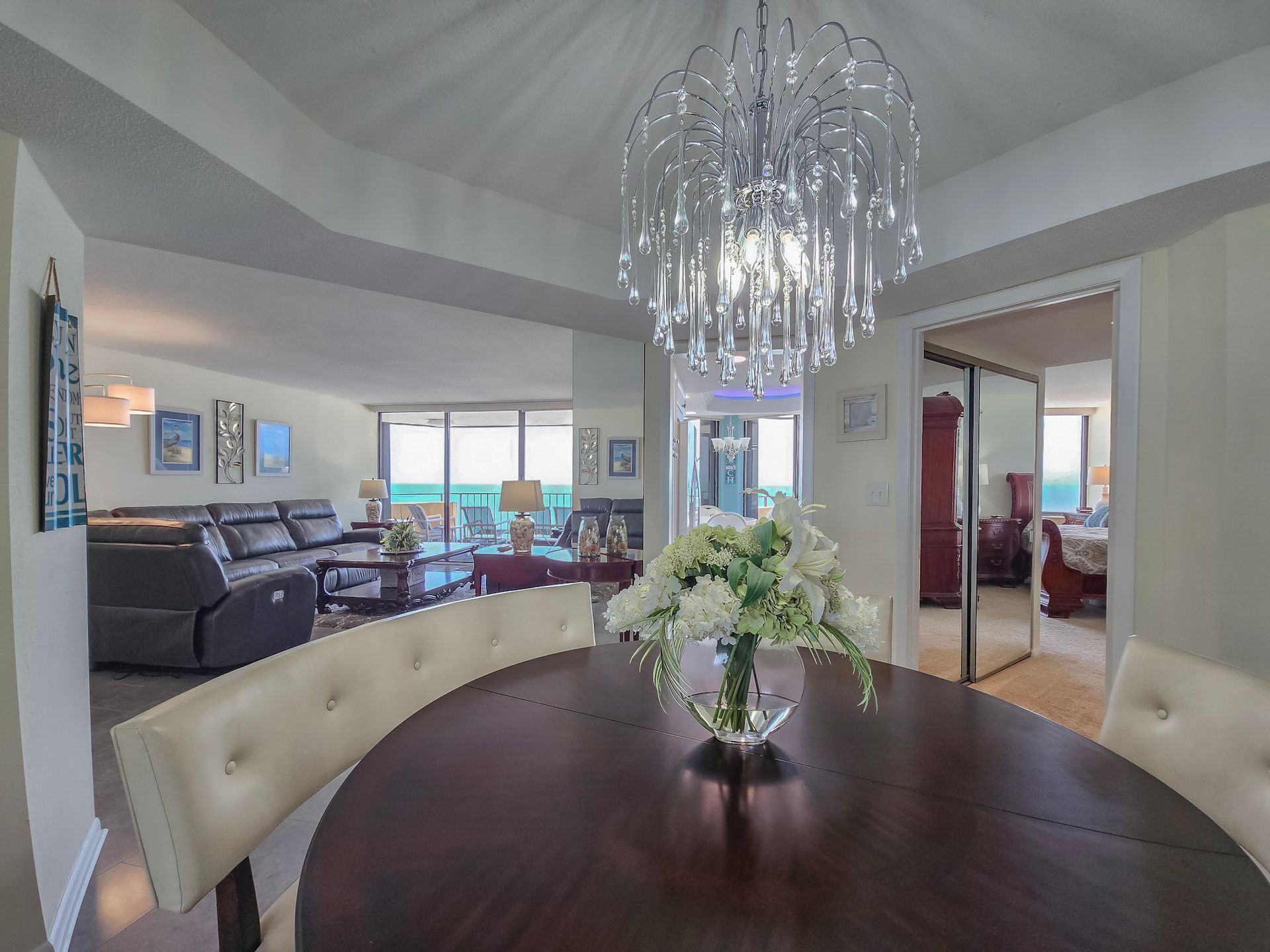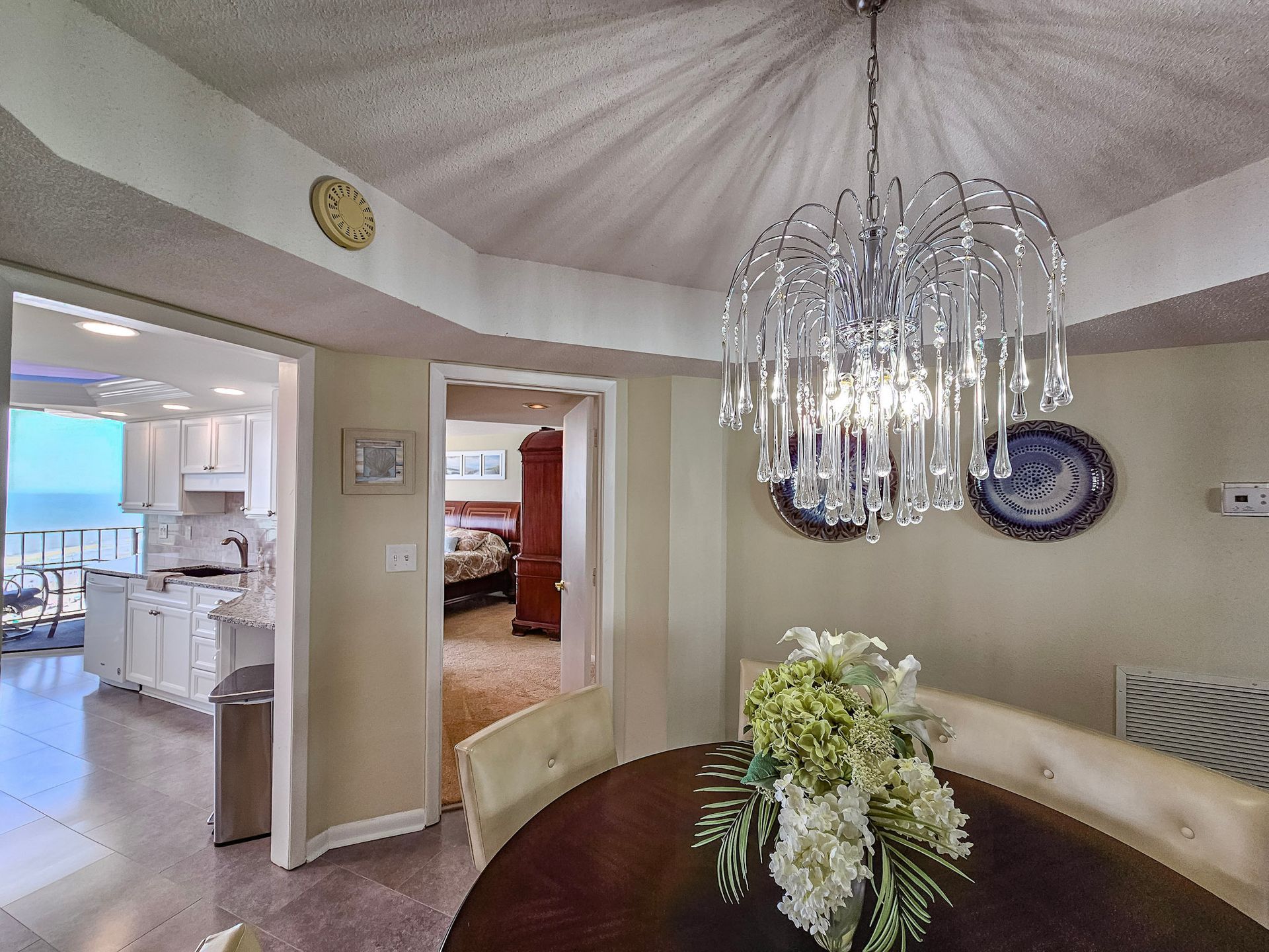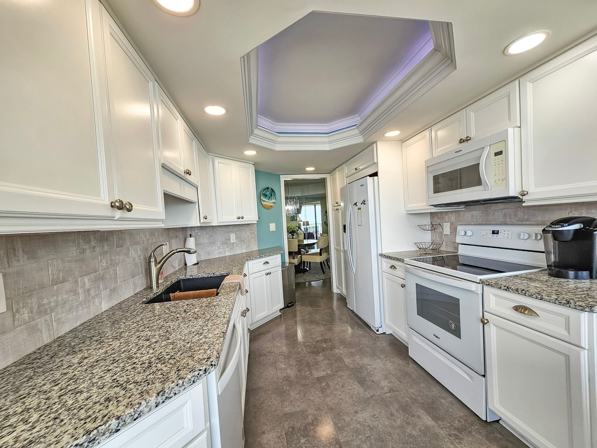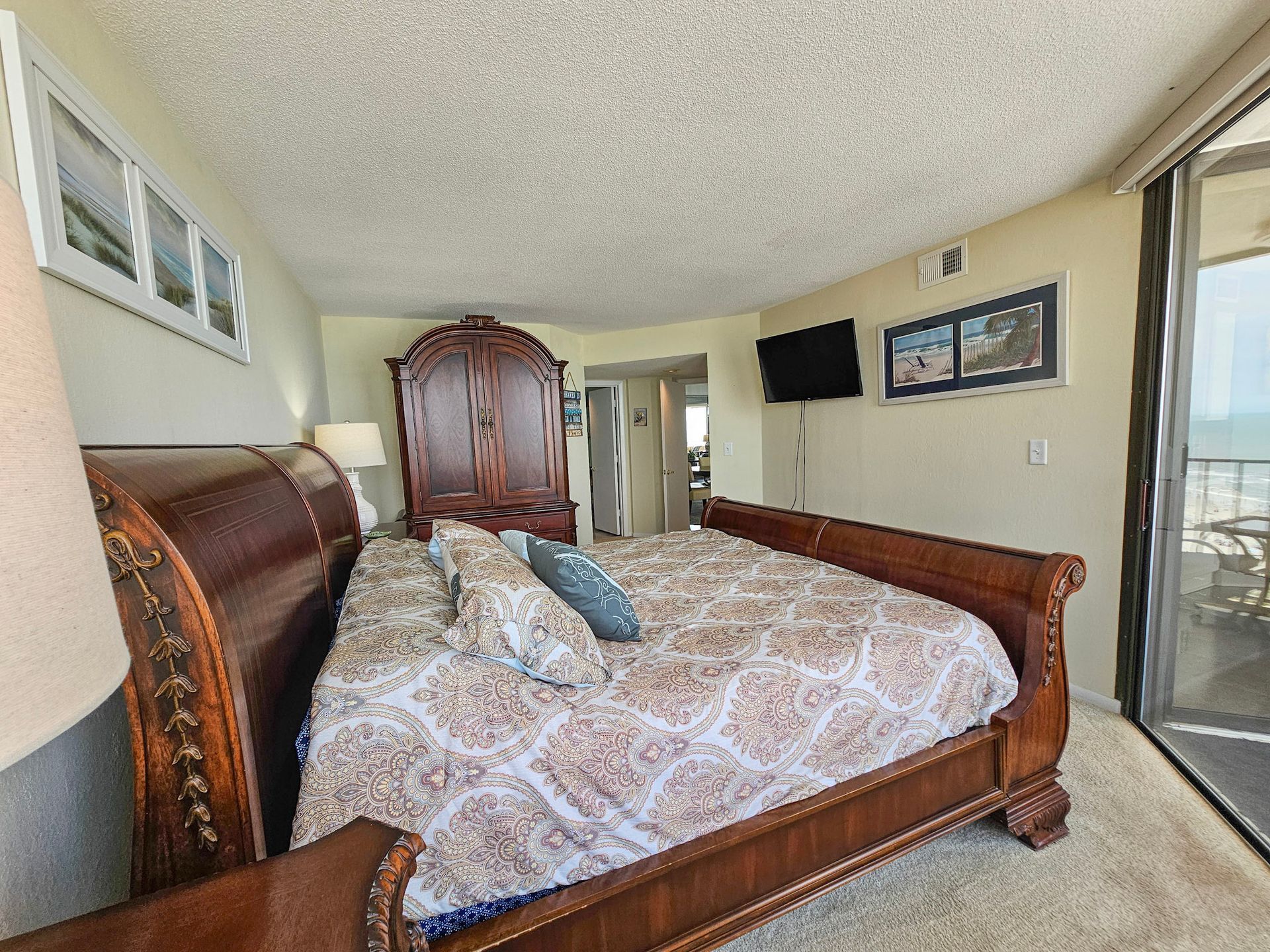 The master bedroom has a king size bed and the guest bedroom has a two queen beds. There is a TV in the living room, in addition, both bedrooms have a TV. A laundry room with a washer and dryer is also inside the unit for your convenience.