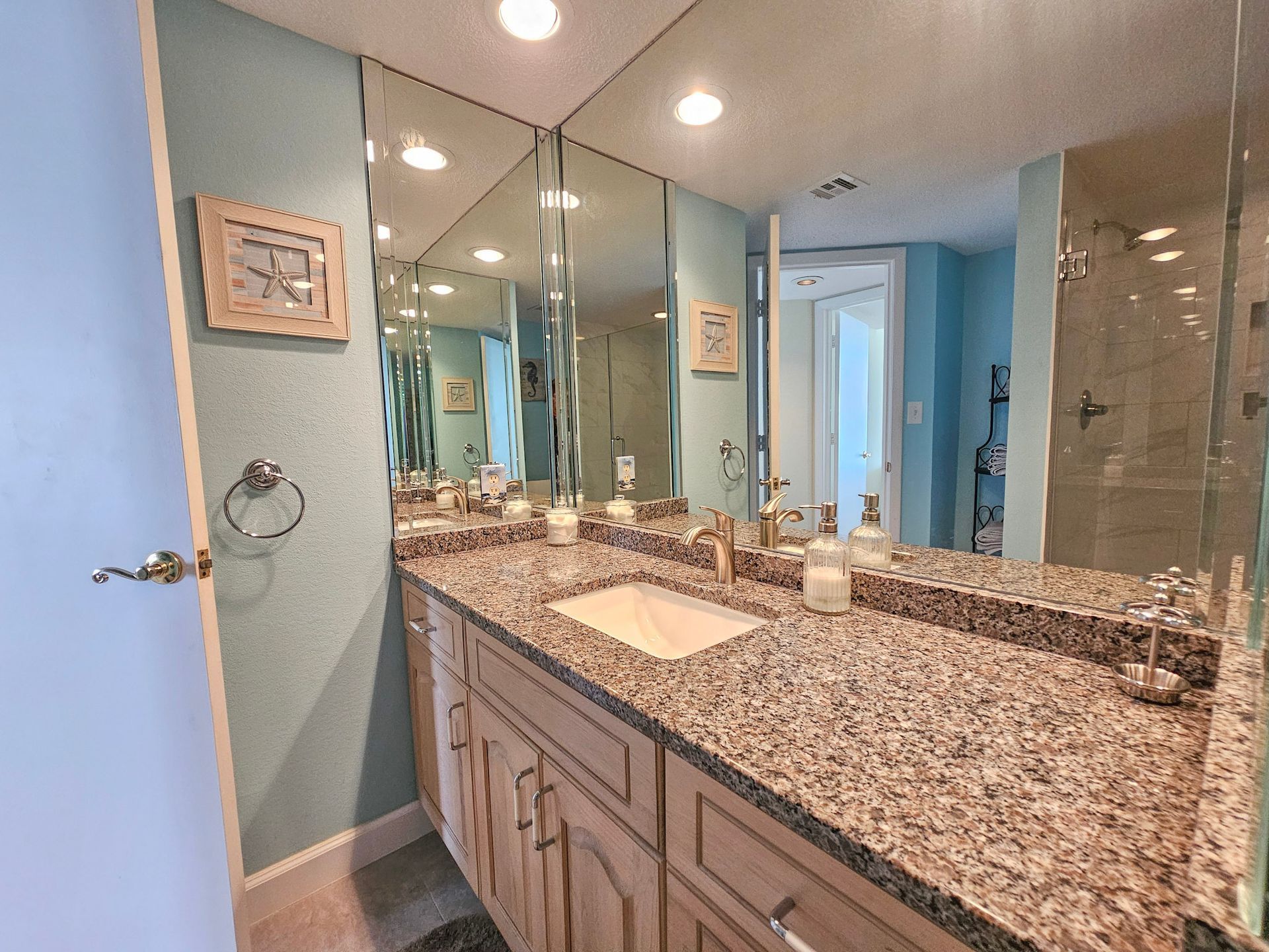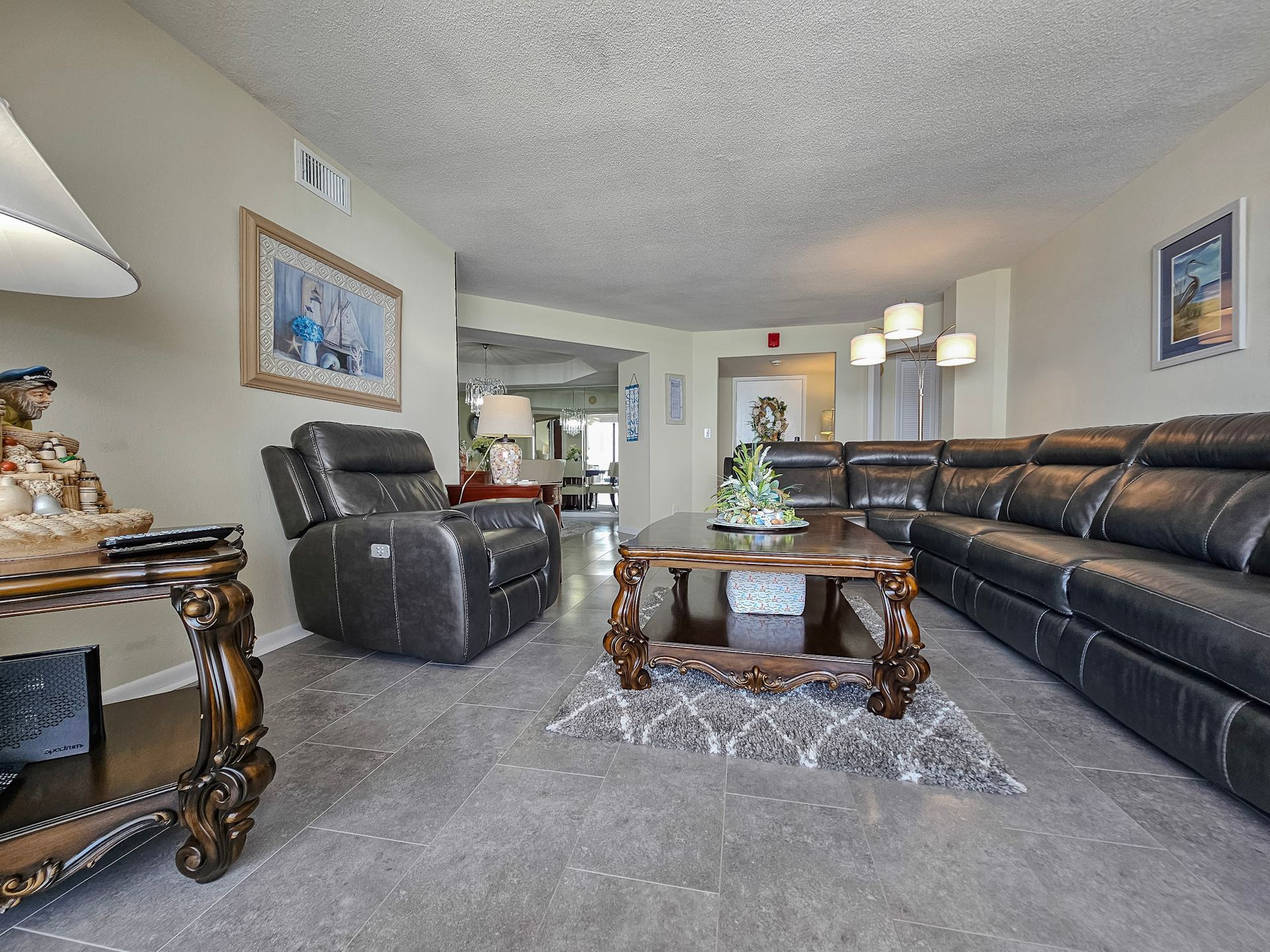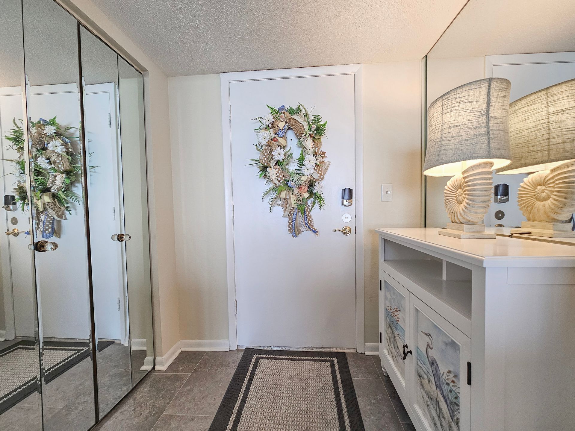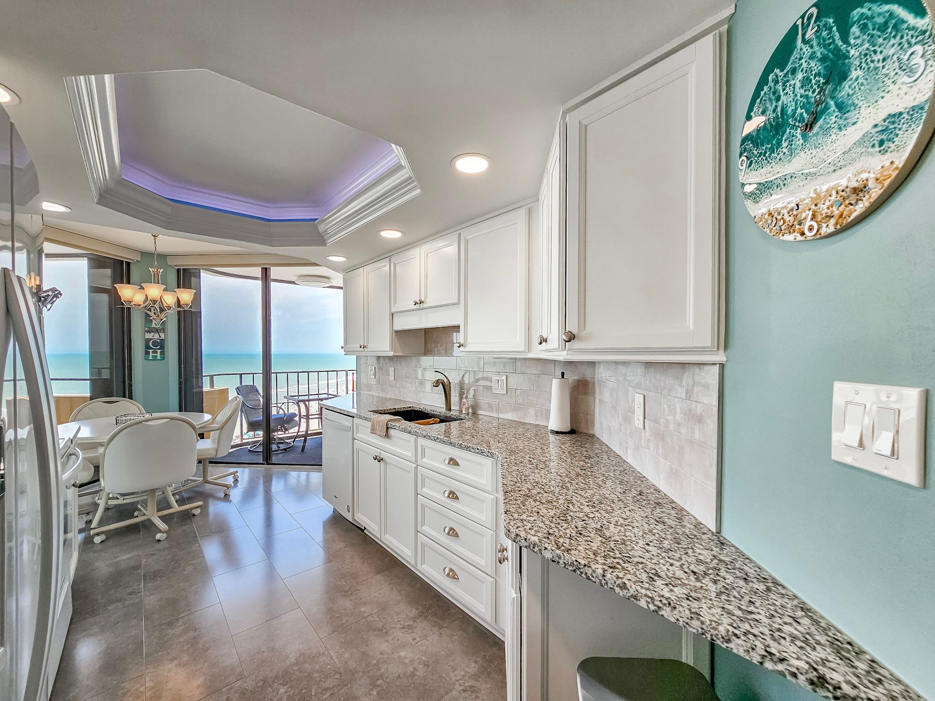 The master bedroom has a king size bed and the guest bedroom has a two queen beds. There is a TV in the living room, in addition, both bedrooms have a TV. A laundry room with a washer and dryer is also inside the unit for your convenience.