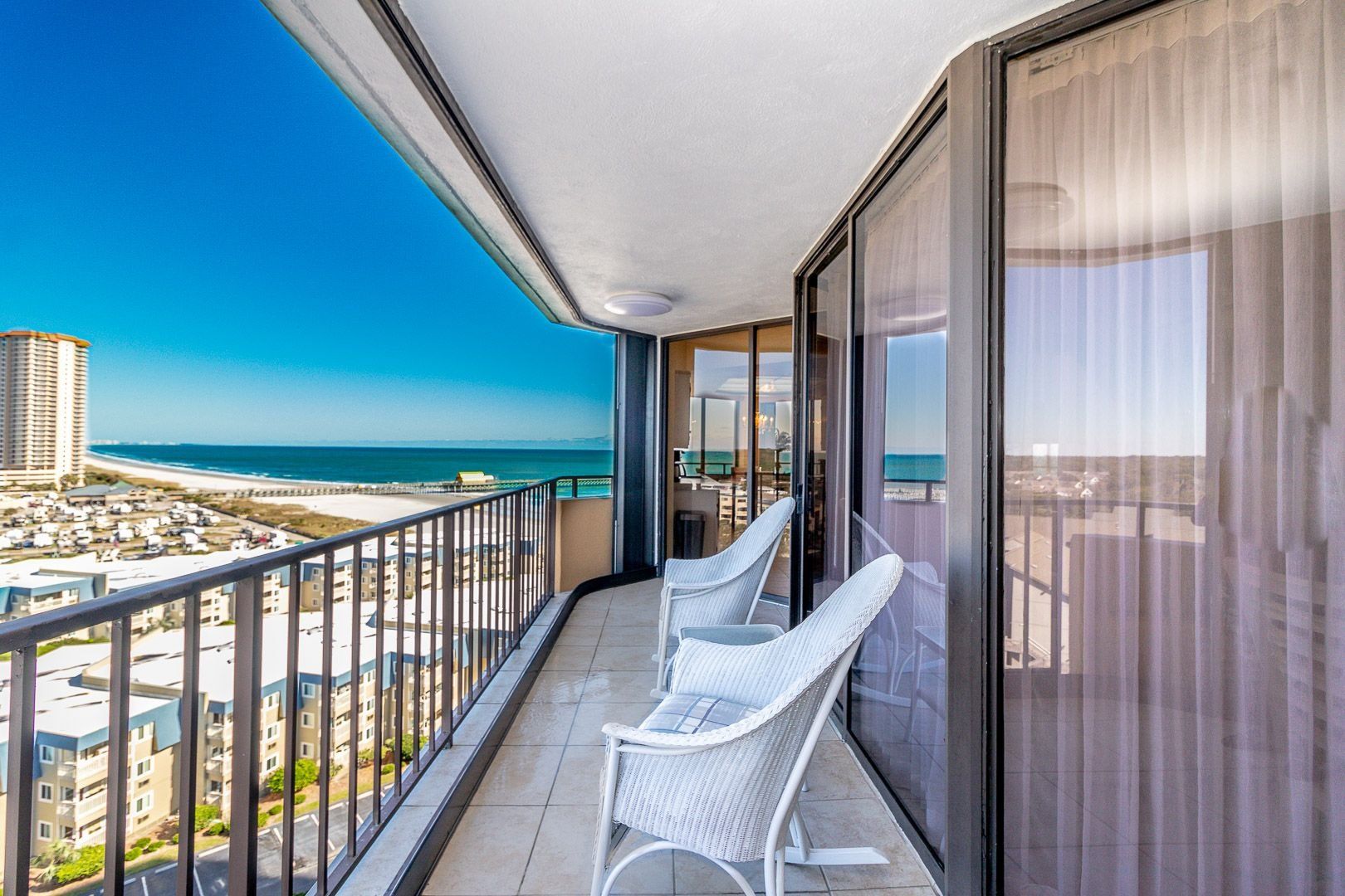 This beautifully decorated oceanfront Unit #1007 offers fantastic views of the ocean and north shoreline. Two balconies are included in the floor plan with a large balcony off the living room and a sunset balcony that faces the west.. The floor plan also includes a formal foyer and sitting area, large living room, split bedrooms for privacy, central air conditioning and heat, two walk in closets, two spacious baths, fully equipped kitchen with a stove, refrigerator, dishwasher, microwave and garbage disposal system.
